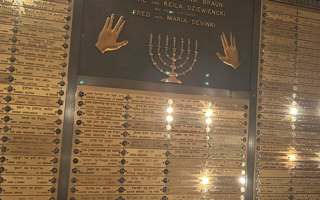 Beautiful bronze individualized memorial plaques with lights are available for purchase, to honor a beloved family member or friend. The memorial plaques are located in the chapel. On the individual’s yahrzeit, the lights are lit. Family members or friends who wish to purchase a memorial plaque should contact the Synagogue office, 913-642-1880